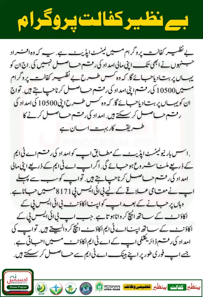 For More Information ; How to Receive the Latest Payment of Rs. 13,500 from the Benazir Income Support Program