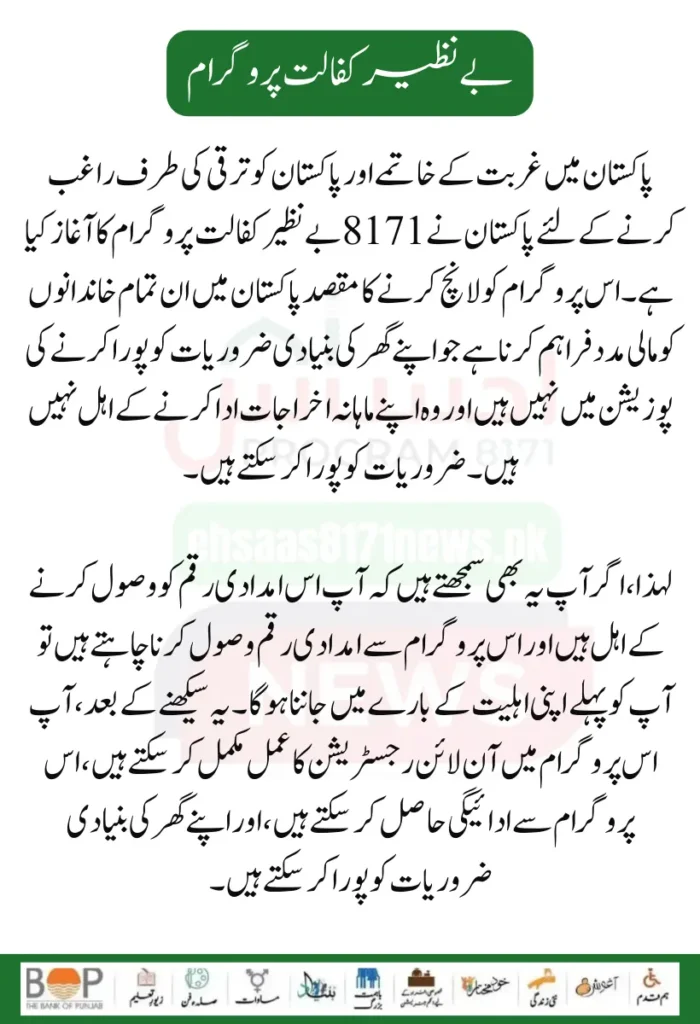The Government of Pakistan has started the 8171 Benazir Kafaalat Program to eradicate poverty in Pakistan and provide financial assistance to the people. If you want to receive payment from this program, you have to complete the registration process. Before completing this, you have to know your eligibility; after knowing this, you can quickly receive payment. All this information and procedures have been explained in detail in our article above.