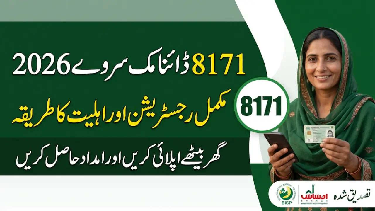 8171 ڈائنامک سروے 2026 پاکستان میں سوشل ویلفیئر پروگرامز کے لیے درست اور تازہ ترین ڈیٹا جمع کرنے کی ایک اہم کوشش ہے۔ اس سروے کے ذریعے حکومت کم آمدنی والے اور ضرورت مند خاندانوں کی شناخت کر کے انہیں بینظیر انکم سپورٹ پروگرام اور احساس جیسے مالی امداد کے پروگرامز میں شامل کر سکتی ہے۔