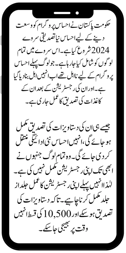 As soon as the verification of their documents is completed, they will be transferred Ehsaas New Payment. All those who have not yet completed their registration. So they should first complete their registration process as soon as possible. So that the documents can be verified and the installment of 10,500 can be sent to them on time.