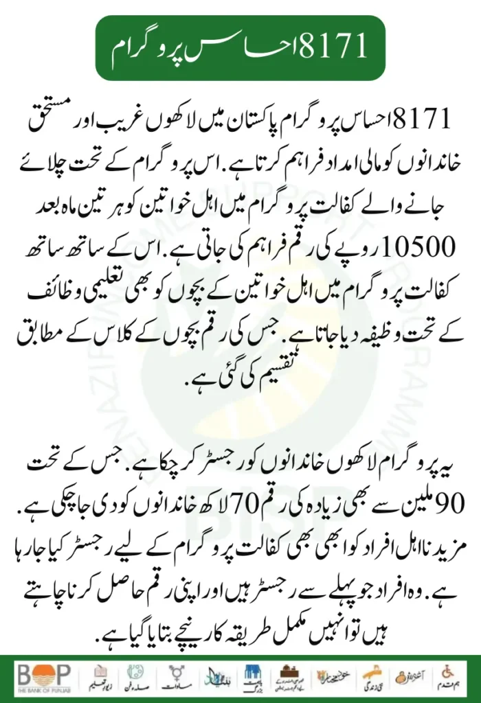8171 Ehsaas Programme Kafaalat payment can use the above method to get sponsorship money.