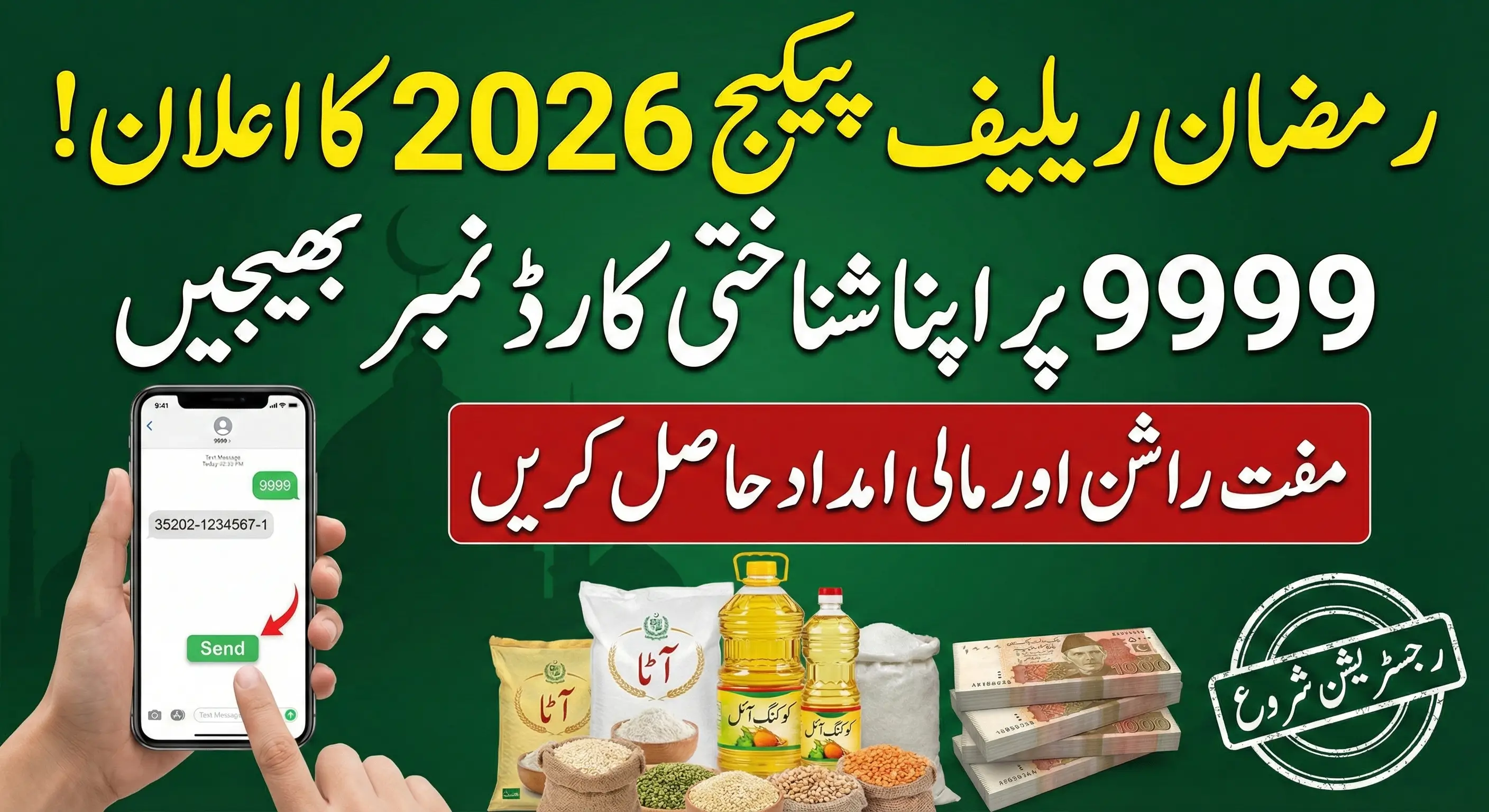 Registering for the Ramzan Relief Package 2026 through 9999 is simple and quick. You do not need internet access or advanced technology to apply.
