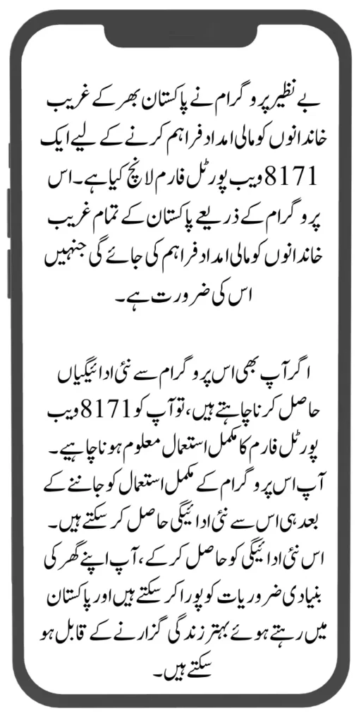 Benazir Program has launched an 8171 web portal form to provide financial assistance to poor families across Pakistan. Through this program, financial assistance will be provided to all the poor families in Pakistan who need it.