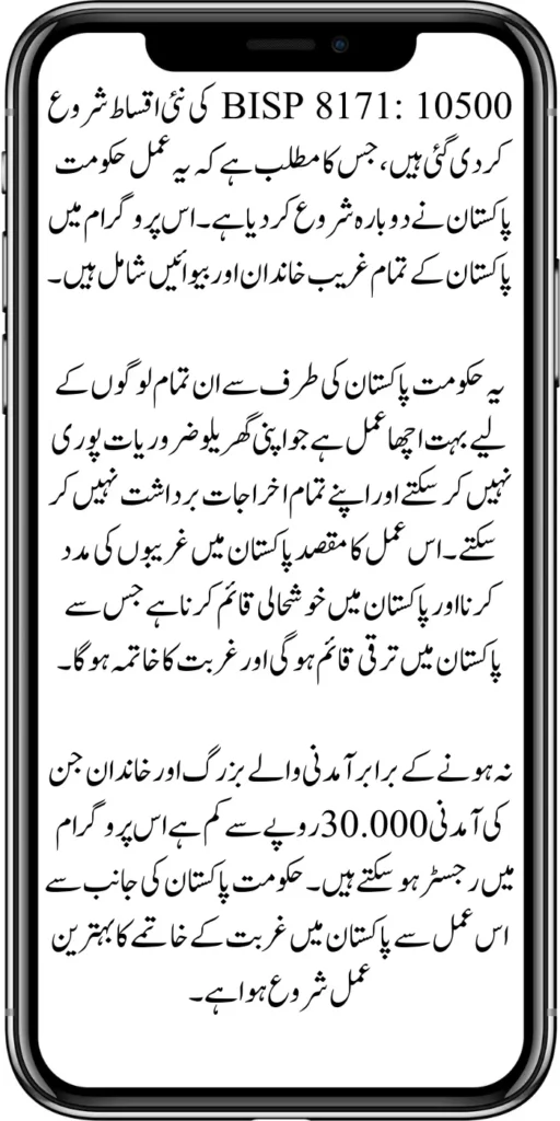 BISP 8171: New installments of 10500 have been started, which means the process has been restarted by the government of Pakistan. This program includes all the poor families and widows in Pakistan.