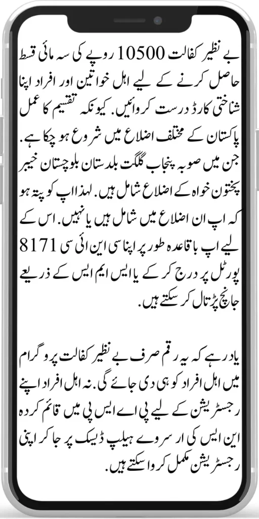 Individuals who want to find out their eligibility whether they are eligible for the new payment of Benazir Kafalat 10500.