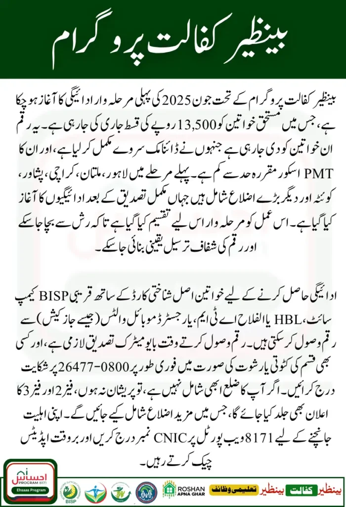Also Read It : BISP 8171 Payment Phase June 2025 Registration For New Applicants