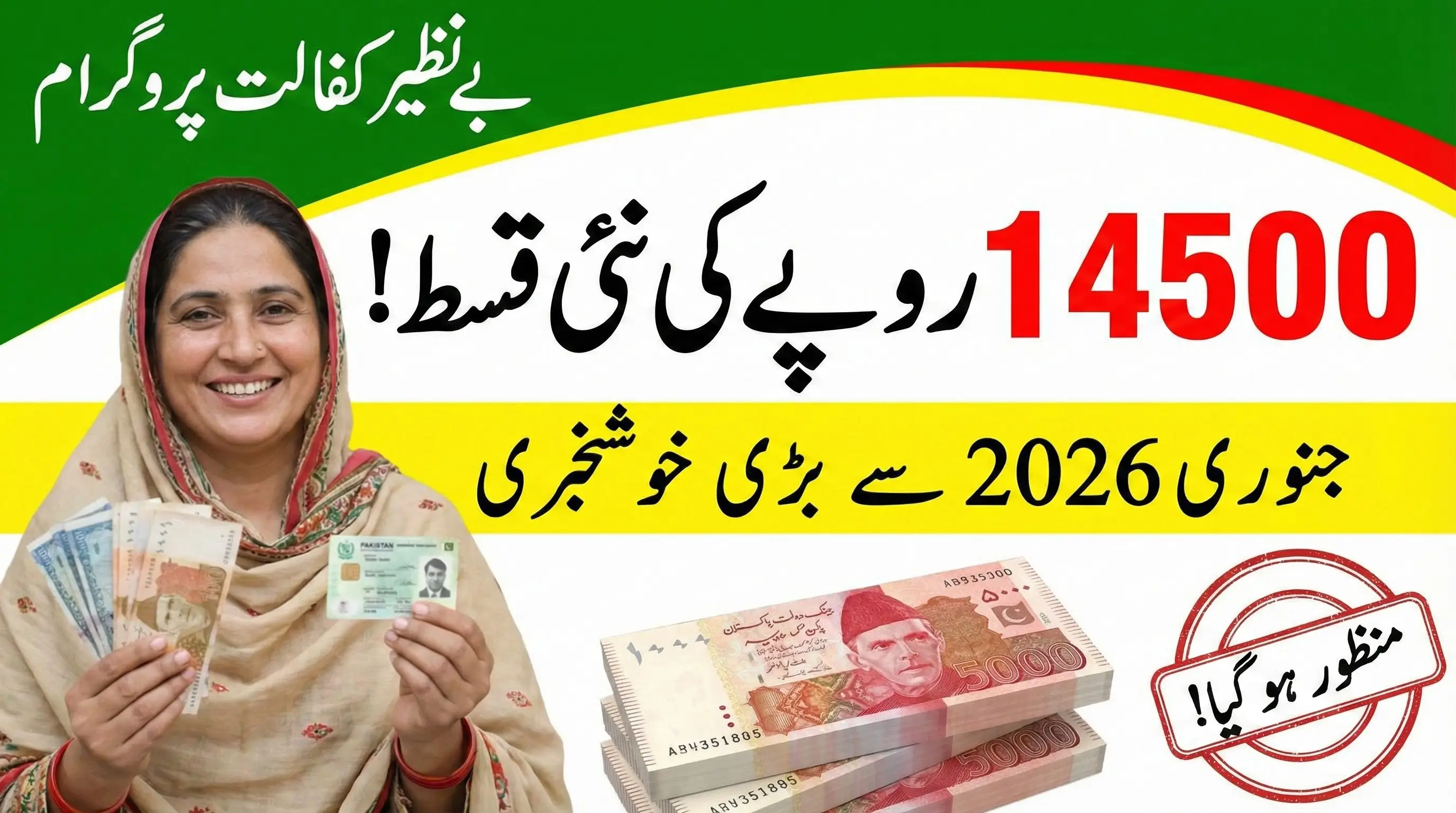 بنظیر کفالت پروگرام نے جنوری 2026 سے اپنے سہ ماہی ادائیگی کی رقم کو 14,500 روپے تک بڑھا دیا ہے، جو غریب اور کم آمدنی والے خاندانوں کے لیے بڑی راحت ہے۔ اس اضافہ کا مقصد خواتین کی قیادت والے گھروں کو مالی طور پر مستحکم کرنا اور روزمرہ کی ضروریات جیسے خوراک، تعلیم، اور صحت کی سہولیات میں آسانی پیدا کرنا ہے۔ اب مستحق خاندان زیادہ سکون کے ساتھ اپنے ماہانہ اور سہ ماہی اخراجات پورے کر سکیں گے۔