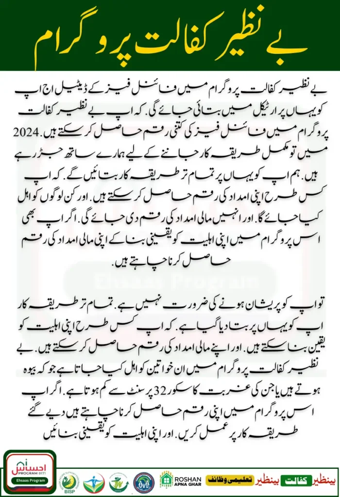 The details of the final phase of the Benazir Kafalat Program will be told to you here in the article. How much money you can get in the final phase of the Benazir Kafalat Program? In 2024, you are connecting with us to know the complete procedure. We will tell you all the procedures here. How you can get your assistance amount? And which people will be eligible. And they will be given financial assistance.
