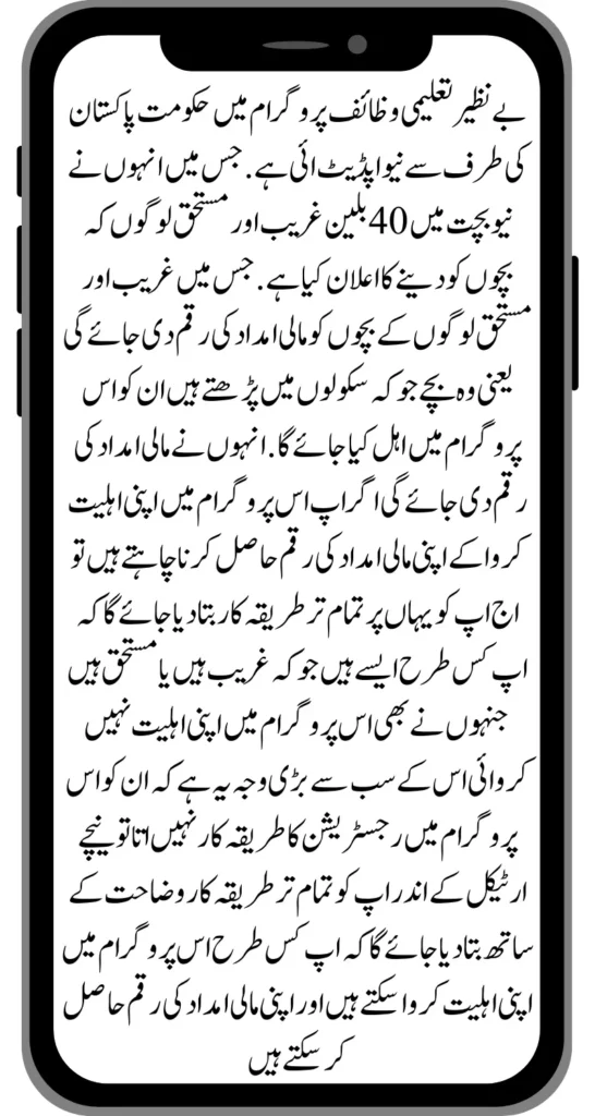 Benazir Taleemi Wazaif Program has been updated by the Government of Pakistan. In which he has announced that give the new budget of 40 billion to poor and deserving people like children. In which financial assistance will be given to the children of poor and deserving people. That is those children who study in schools. They will be eligible for this program. They will be given the amount of financial assistance.