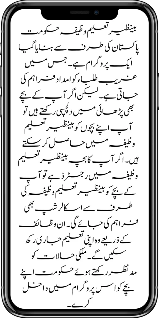 We are giving you a new update from Benazir Taleemi Wazifa: Students who are not being supported by Benazir Taleemi Wazifa should send their children through Benazir Taleemi Wazifa.