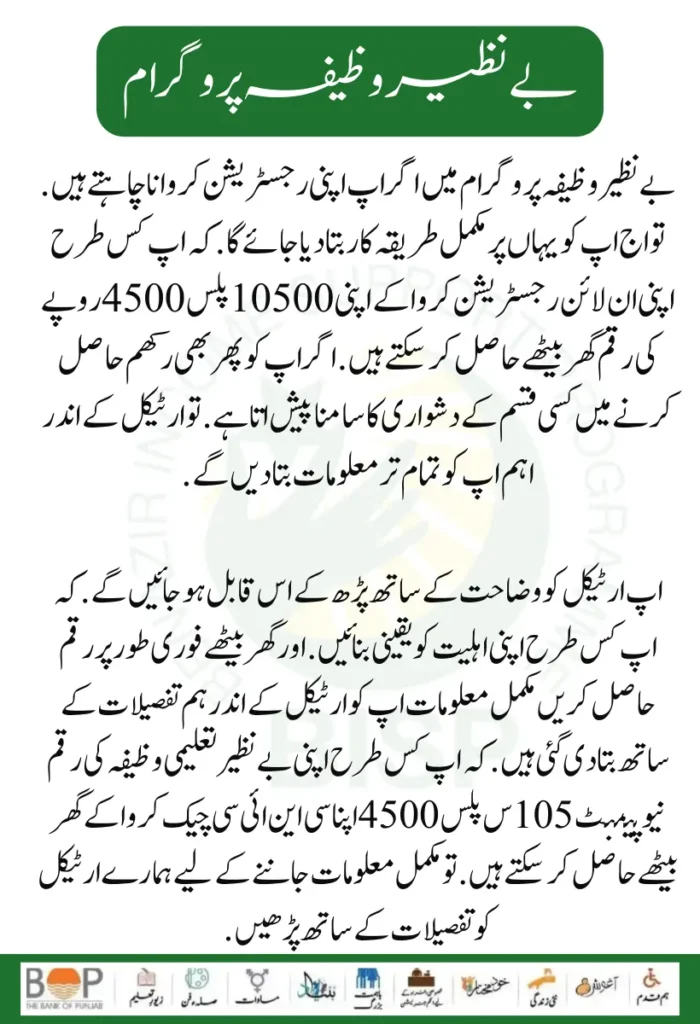 If you want to register yourself in the Benazir Wazifa program. So you will be told the complete procedure here. How you can get your Rs 10,500 plus Rs 4,500 at home after doing your online registration? If you still face any problems in getting Rakham. So inside the article will tell you all the important information. You will be able to do this by reading the above article with an explanation.Β