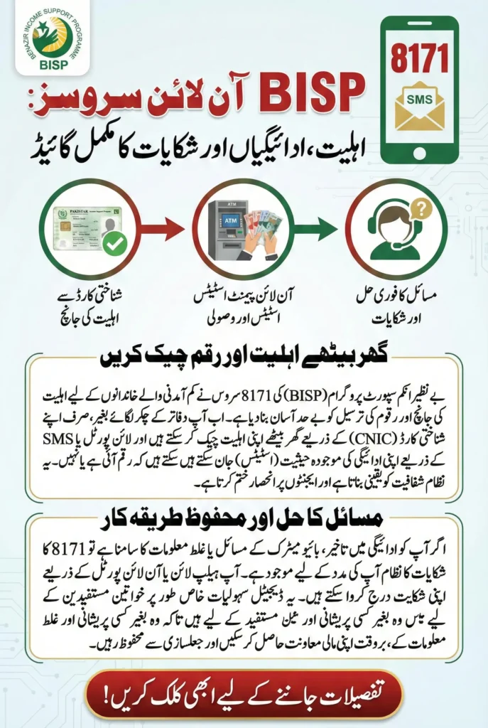 BISP 8171 online services have made CNIC verification, payment tracking, and complaint resolution more accessible for deserving families across Pakistan.