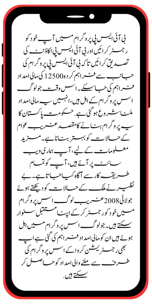 For more information, you come to our website, and you will be informed about all the procedures. Benazir looked at the situation of the country in July 2008. Poor people can make their future by registering themselves in this program. Financial assistance has been provided to those who have qualified in this program, you can also get the assistance provided by this program by registering.