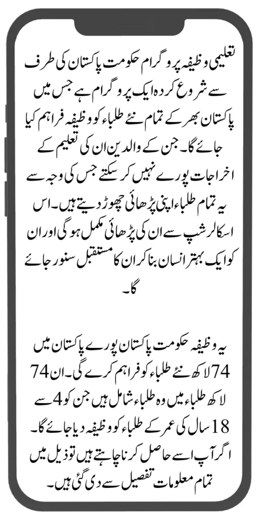 This Wazifa will be provided by the government of Pakistan to 74 lakh new students across Pakistan. These 74 lakh students include those students to whom stipends will be given to students aged 4 to 18 years. If you want to get it, all the information has been given in detail below.
