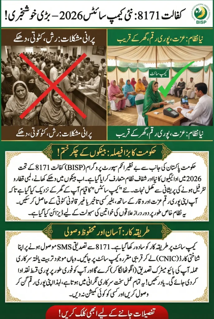 BISP Kafalat 8171 campsites in 2026 represent a significant step toward a fairer and more efficient payment system. By bringing services closer to beneficiaries and ensuring transparent procedures, these campsites help restore confidence in the program and protect the rights of deserving families.