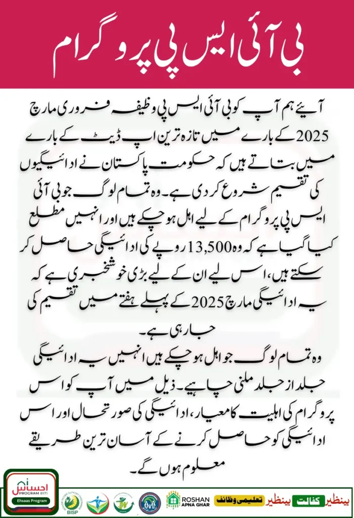 Information regarding the update and payment schedule for the distribution of BISP stipend February- March 2025 has been explained to you in detail in this article. If you want to get the BISP payment, then read the information given below carefully.