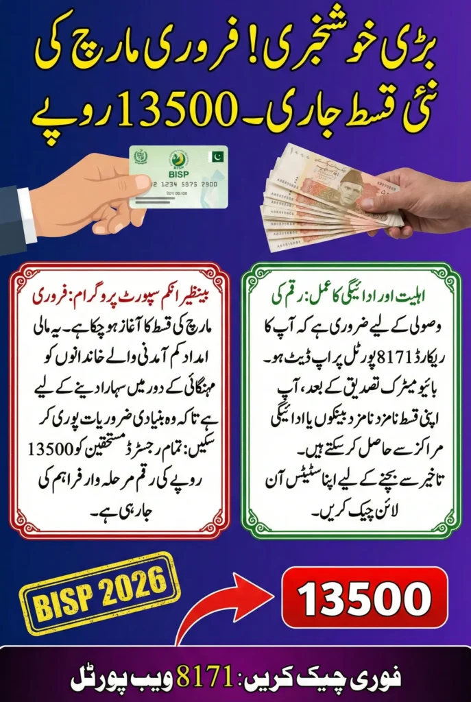 BISP stipend for February–March 2026 reflects the ongoing commitment to assisting eligible families through organized and reliable financial support. With phased distribution, clear eligibility conditions, and accessible verification methods, the program continues to play a significant role in strengthening household resilience.