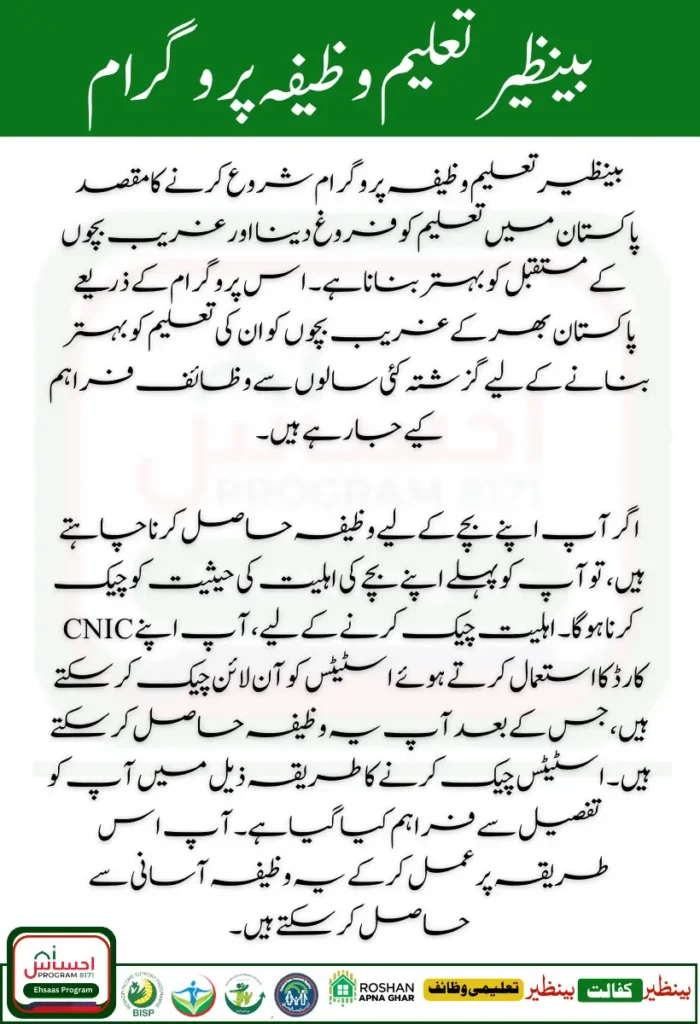 Check Benazir Taleemi Wazifa Status Online via CNIC