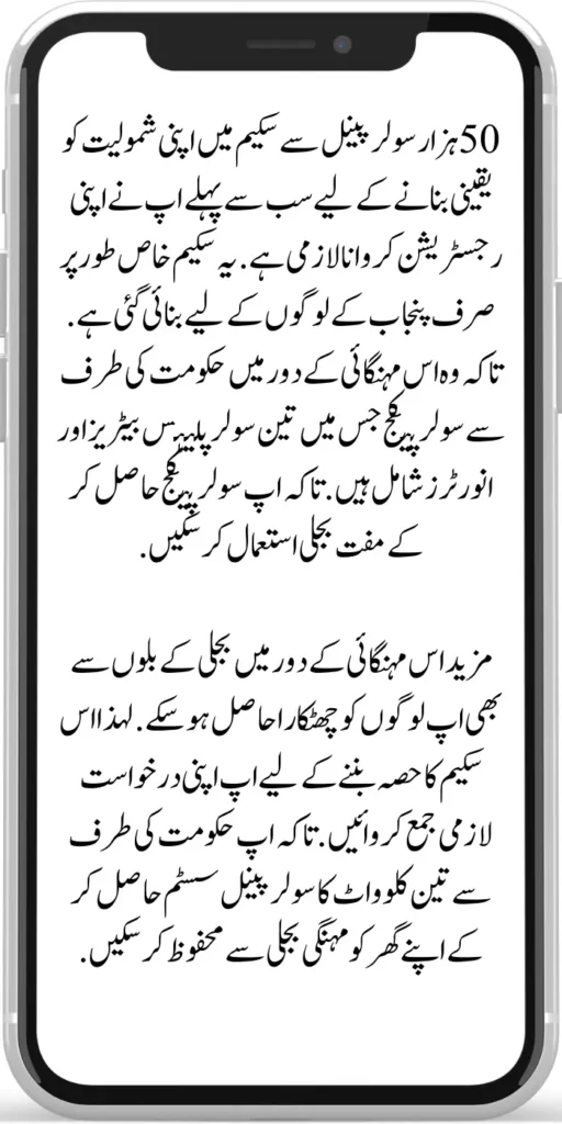 To ensure your participation in the scheme with 50000 solar panel scheme, you must first register yourself. This scheme is specially designed only for the people of Punjab. So in this era of inflation solar package by the government includes three solar plates batteries and inverters. So that they can use free electricity by getting up solar package.