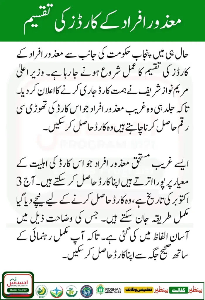 Recently, the process of distribution of cards for disabled people is going to be started by the Punjab government. Chief Minister Maryam Nawaz Sharif has announced the issue of the courage card. So that soon those poor disabled people who want to get a small amount of this card can get the card.