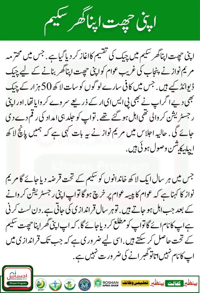 You Can Also Read It ; Apni Chat Apna Ghar CM Of Punjab Maryam Nawaz