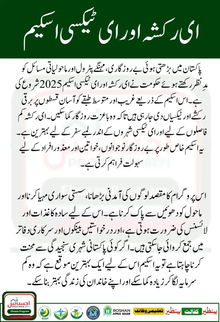 The E Rickshaw and E Taxi Schemes 2025 are a golden opportunity for unemployed youth, women, and low-income families of Pakistan. These schemes not only solve transport issues but also help people earn a stable livelihood with low costs and high benefits. By applying today, citizens can secure a better future for themselves and contribute to cleaner and greener Pakistan.