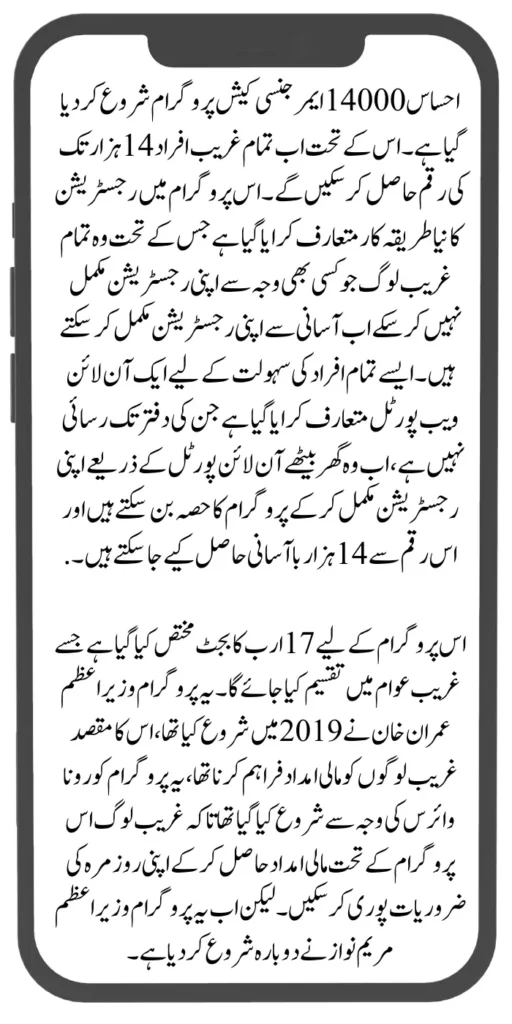 Under the Ehsaas 14000 emergency cash program, money up to 14 thousand is being provided to all the poor people, in all the relatives can easily get the money by completing their registration. This program was started in 2019 by Imran Prime Minister Imran Khan. What was done by Chief Minister Maryam Nawaz now this program is being handled and run.