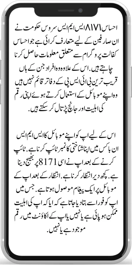 Ehsaas 8171 SMS service has been introduced by the government for those users who want to get information about the Ehsaas Kafalat program. Apart from this, people who do not have the nearest BISP offices can check their money eligibility and check using their mobile.