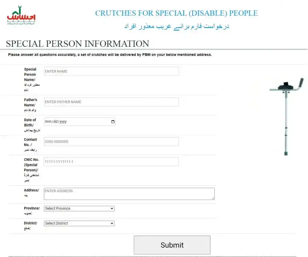 Ehsaas for Disabled Person Registration Form