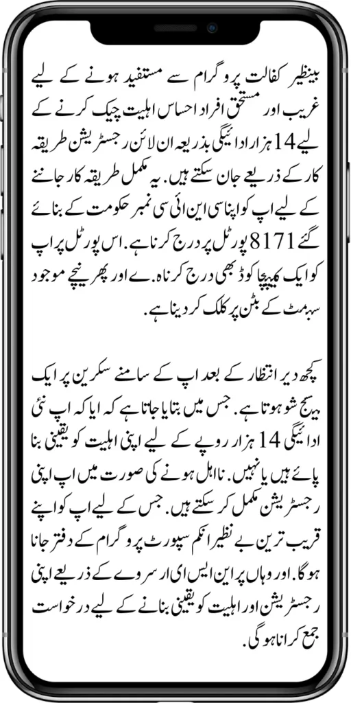 After waiting for some time, a message is shown on the screen in front of you. In which it is asked whether you have ensured your Ehsaas Eligibility For 14000 or not. In case of ineligibility, you can complete your registration. For this, you have to go to your nearest Benazir Income Support Program office. There you have to apply to ensure your registration and eligibility through the NSER survey.