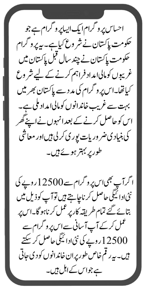 To get the new payment of Rs 12500 from the Ehsaas program, the complete procedure is given below. After completing this you can easily get this payment of 12500 rupees. Here is the complete procedure.