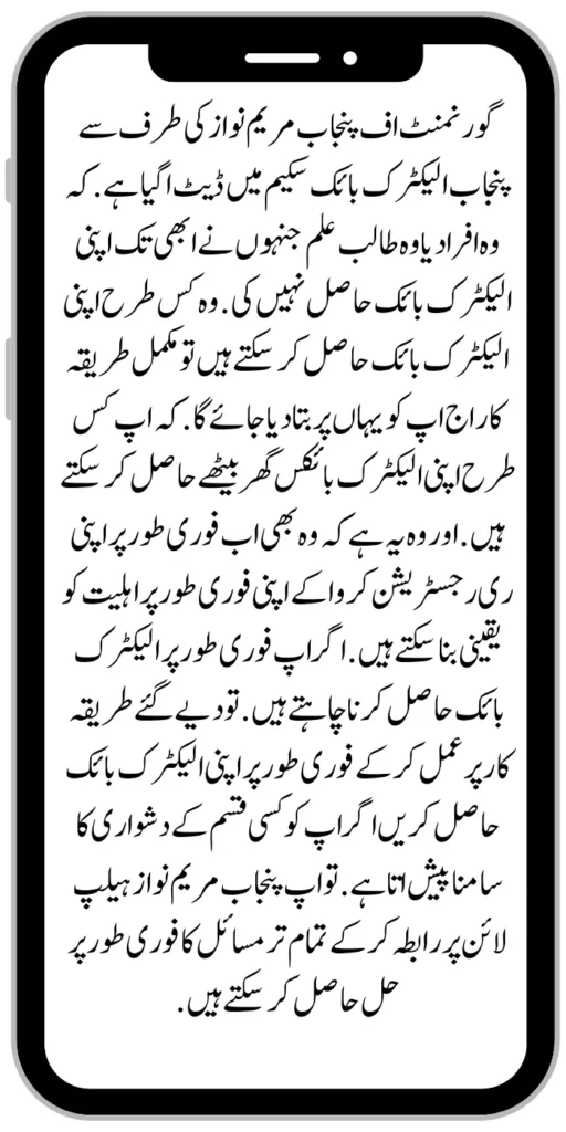 They can now also ensure their immediate eligibility by getting their re-registration done immediately. If you want to get an electric bike immediately. So follow the given procedure and get your electric bike immediately if you face any kind of problem. So you can contact the Punjab Maryam Nawaz helpline and get immediate solutions to all the problems.