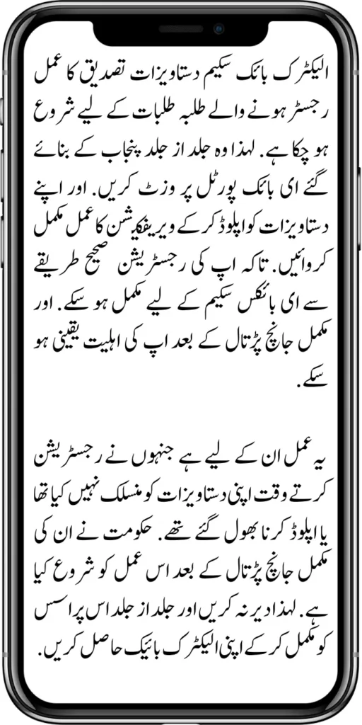 All the students living in Pakistan who are going by Maryam Nawaz. The registration process for the electric bike scheme was completed. Now they want to complete the verification process of their documents using the online portal sitting at home.