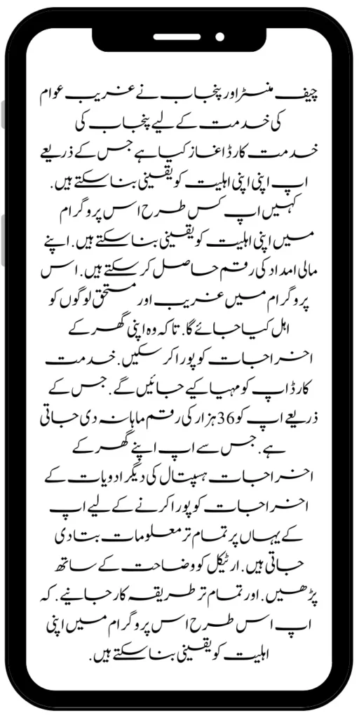 The Chief Minister and Punjab have launched the Punjab Khidmat Card to serve the poor people through which you can ensure your eligibility. How can you ensure your eligibility in this program? You can get your financial aid money. Poor and deserving people will be eligible in this program so that they can meet their household expenses.