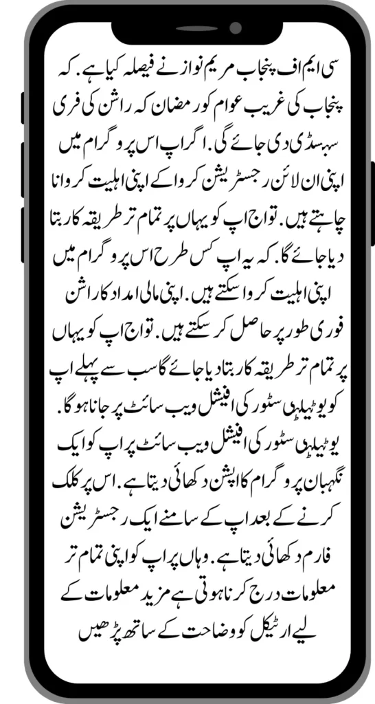 If you want to get your registration done in the Nihgaban program through a new method. So you will be told all the procedures here. How can you qualify for this program? And can get their financial aid ration. If the survey team is faced with the problem of ration after visiting the ration house, then they can also contact the UPCMF Punjab Chief Minister Maryam Nawaz’s helpline.