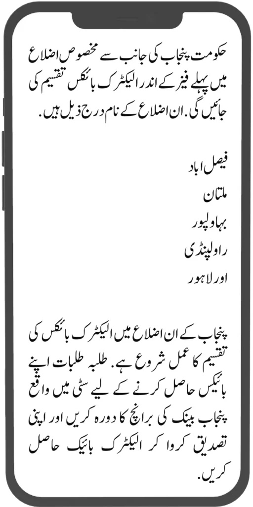Electric bikes will be distributed in the first phase by the Punjab government in certain districts. The names of these districts are as follows.