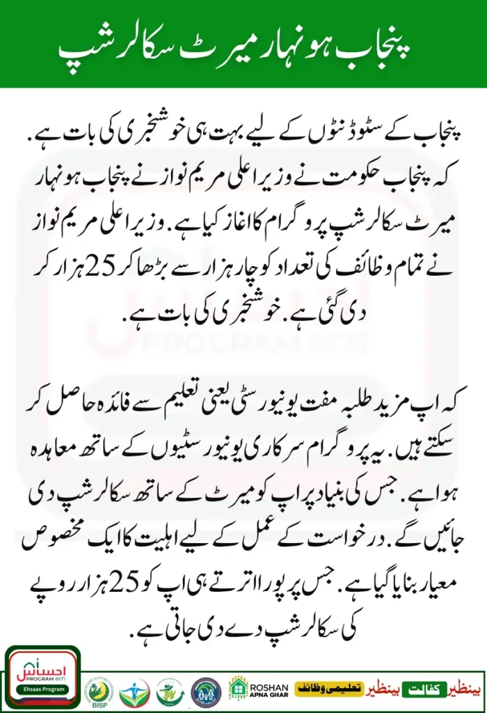 Punjab Honahar Merit Scholarship Program
