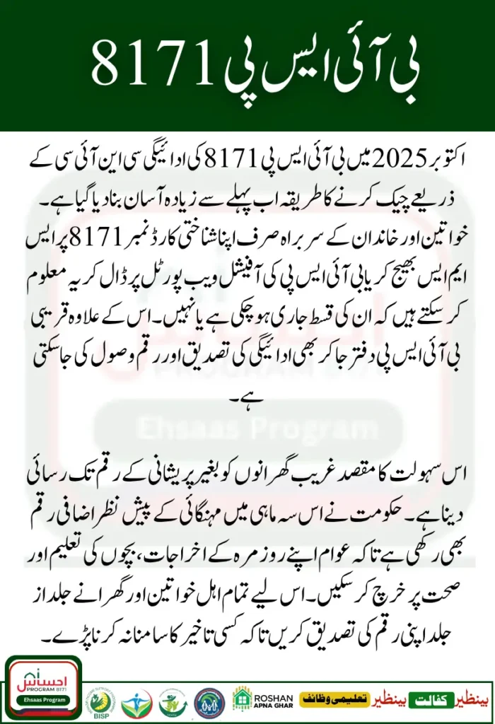 How can I check my BISP 8171 payment with CNIC in October 2025?