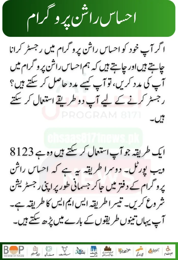 If you want to register yourself in the Ehsaas Ration Program and want us to assist you in the Ehsaas Rashan Program, how can you get help? There are two methods you can use to register.