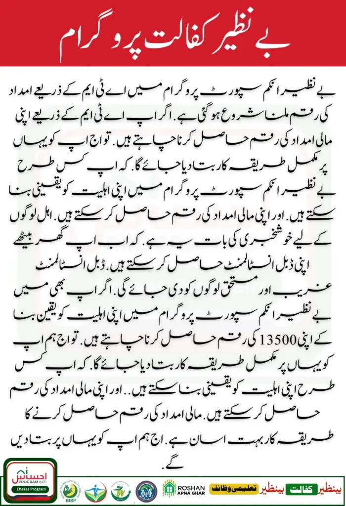 Benazir Income Support Program has started receiving assistance through ATM. If you want to get your financial assistance through ATM. Then today you will be told the complete procedure here. How you can ensure your eligibility in the Benazir Income Support Program. And get your financial assistance amount. The good news for eligible people is that now you can get your double instalment sitting at home.