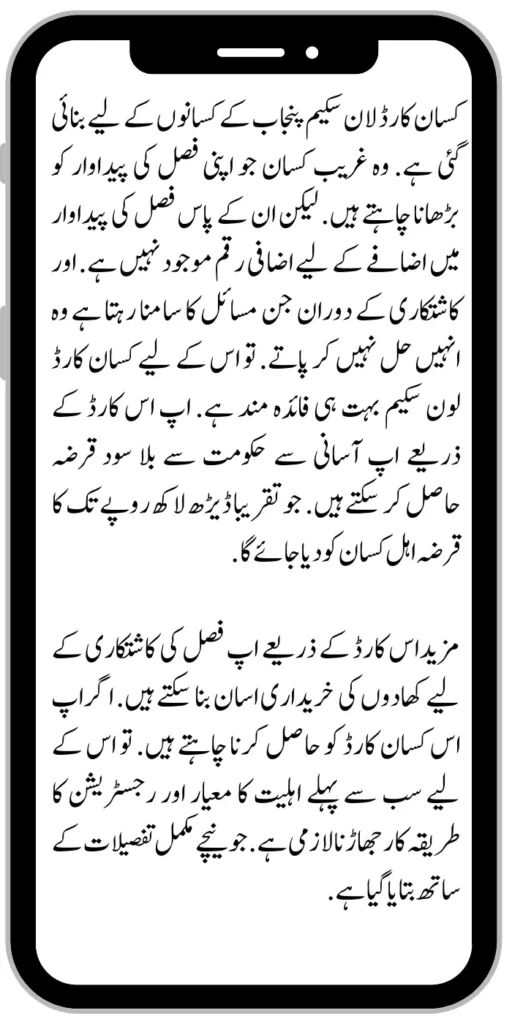 The Kisan Card Loan Scheme is designed for the farmers of Punjab. Those poor farmers who want to increase their crop production. However, they do not have additional money to increase crop production. And they cannot solve the problems faced during farming. So Kisan Card Loan Scheme is very beneficial for him.Β