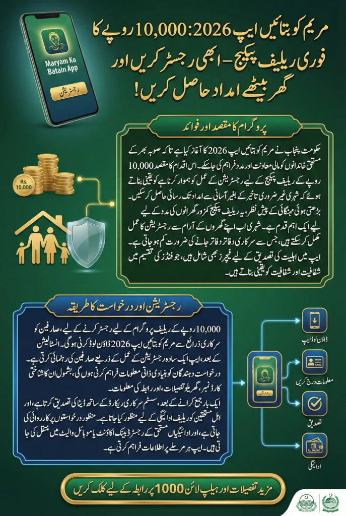 Maryam Ko Batain App 2026 is a major step toward digitizing government welfare programs in Punjab. By allowing citizens to register, apply for the Rs. 10,000 relief package, and communicate with helpline 1000 directly through their smartphones, the government has made financial assistance more accessible and efficient. Eligible families are encouraged to download the app and complete their registration as soon as possible to benefit from this relief program.