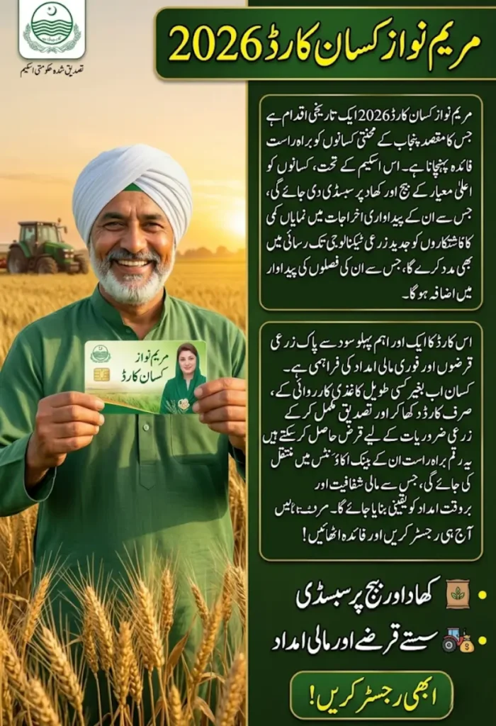 Maryam Nawaz Kisan Card 2026 is a government initiative aimed at supporting farmers in Punjab. Farming is the backbone of the province’s economy, but many small and medium-scale farmers struggle with rising costs for seeds, fertilizers, and other essential inputs. This program is designed to provide financial assistance and make agricultural resources more accessible, helping farmers sustain and grow their livelihoods.