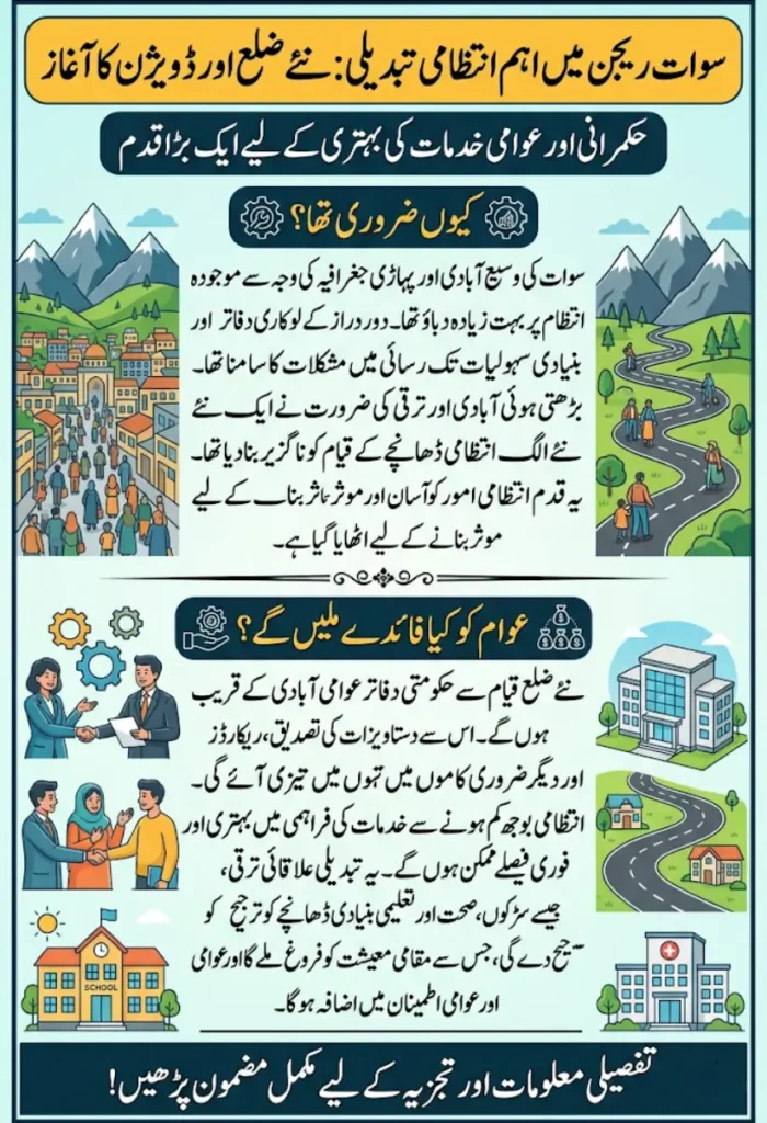 The decision to create a new administrative district in Swat represents an important step toward improving governance in the region. By dividing a large and complex area into smaller units, the government aims to make administration more effective and responsive.