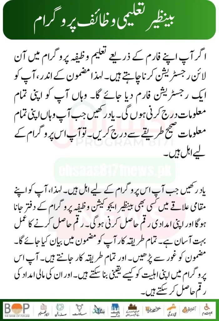 For More Information, Benazir Taleemi Wazaif Program Registration