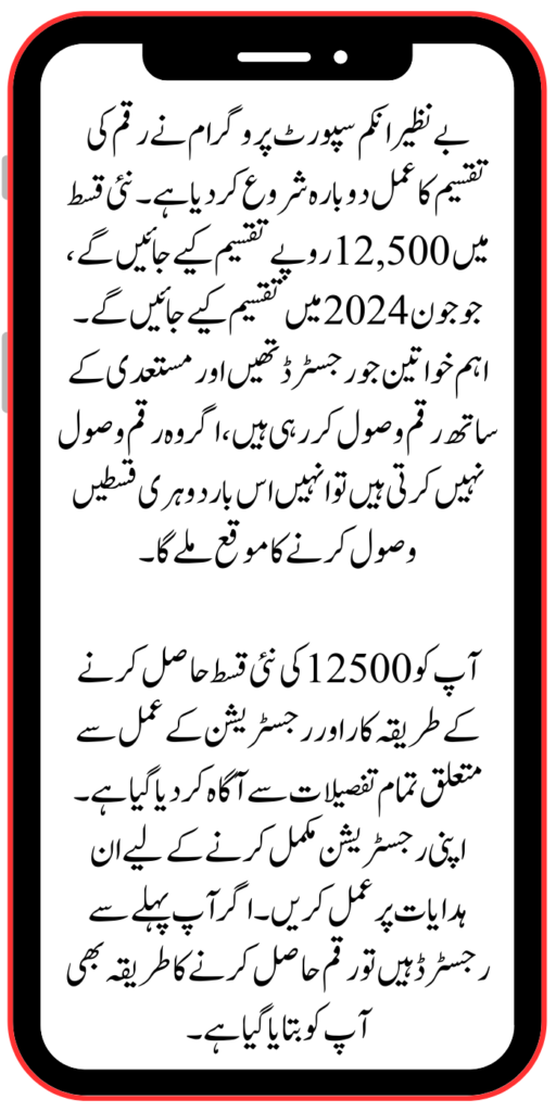 The Benazir Income Support Program has restarted the money distribution process. 12,500 will be disbursed in the new installment, which will be distributed in June 2024. Vital women who were registered and receiving money with due diligence will get a chance to receive double installments this time if they do not receive the money.