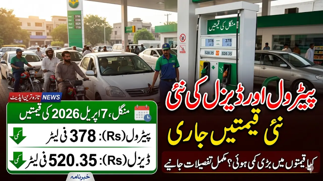 پیٹرول اور ڈیزل کی قیمتوں میں کمی کا اعلان 7 اپریل 2026کو کیا گیا، جس سے عوام کو کچھ مالی ریلیف ملا ہے۔ پیٹرول کی نئی قیمت 378روپے فی لیٹر اور ڈیزل کی قیمت 520روپے فی لیٹر مقرر کی گئی ہے۔ اس کمی کا سب سے زیادہ فائدہ روزانہ سفر کرنے والے افراد اور ٹرانسپورٹ کے شعبے میں کام کرنے والوں کو ہوگا، کیونکہ اب انہیں ایندھن پر پہلے کے مقابلے میں کم خرچ کرنا پڑے گا۔