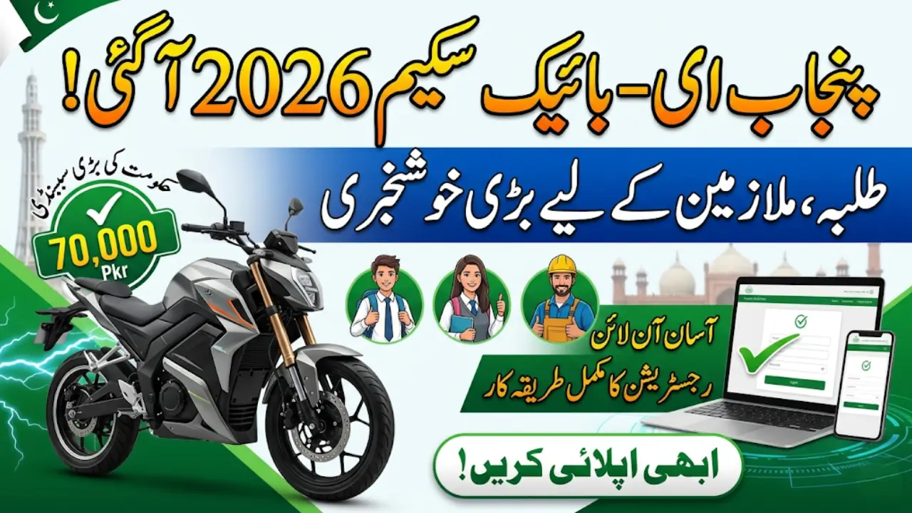 پنجاب ای بائیک اسکیم ۲۰۲۶ حکومت پنجاب کی ایک اہم پہل ہے جس کا مقصد شہریوں کو سستی اور ماحول دوست ٹرانسپورٹ فراہم کرنا ہے۔ اس اسکیم کے تحت اہل شہریوں کو بائیک خریدنے کے لیے مالی امداد دی جاتی ہے