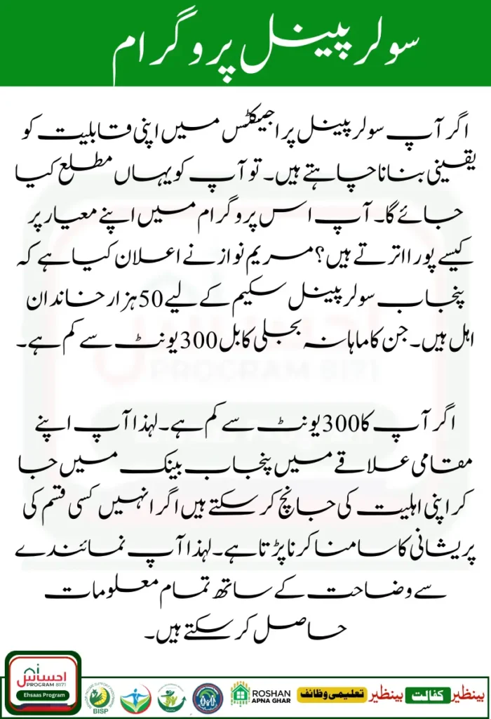 They are qualified for this program and go to the Punjab Bank of their local area take the registration form from the representative, and enter all their information there. Remember when you qualify for this program. So you get a loan from Punjab Bank in your local area. From which you buy solar panels. If you are still facing any kind of problem, you can get all your information from the representative.