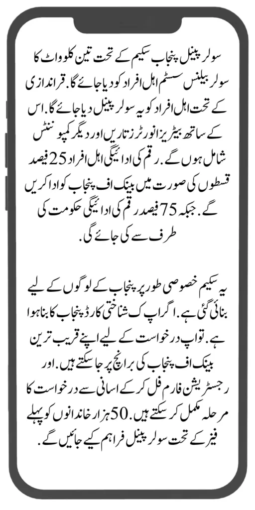 This scheme is specially designed for the people of Punjab. If your identity card is made in Punjab. So you can go to your nearest Bank of Punjab branch for application. And you can easily complete the application process by filling out the registration form. Solar panels will be provided to 50 thousand families under the first phase.